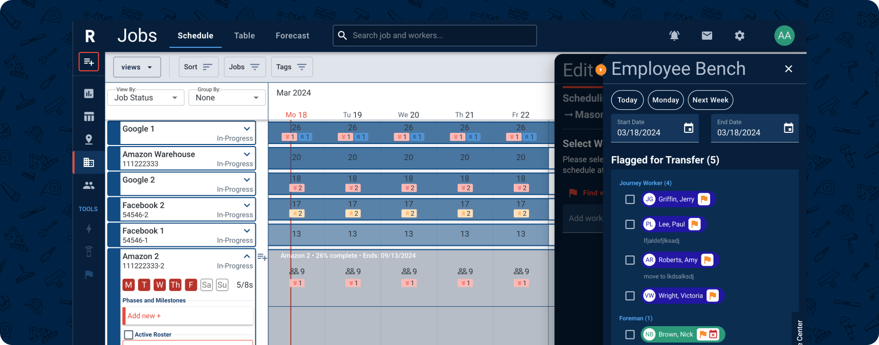 - Flattern the curve and maximize your workforce: See exactly when each trade is needed across all jobs to maximize utilization