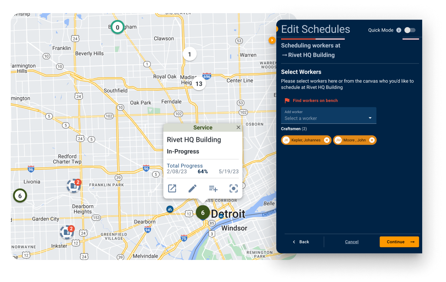 “Not only does it help us with our scheduling, but now we can also forecast, request manpower and delegate manpower and then also have all of our contact cards for all of our employees in one area. We no longer have to go to the file cabinet or rolodex. We only wish we had spreadsheets a couple of years ago to know where our guys were all at but now with RIVET we are on queue with going to the 21st century.”