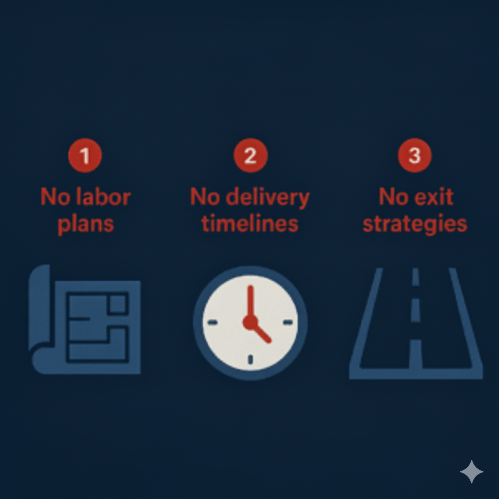 - Lack of labor plans: Without resource profiles, there were no benchmarks to measure labor consumption against project completion