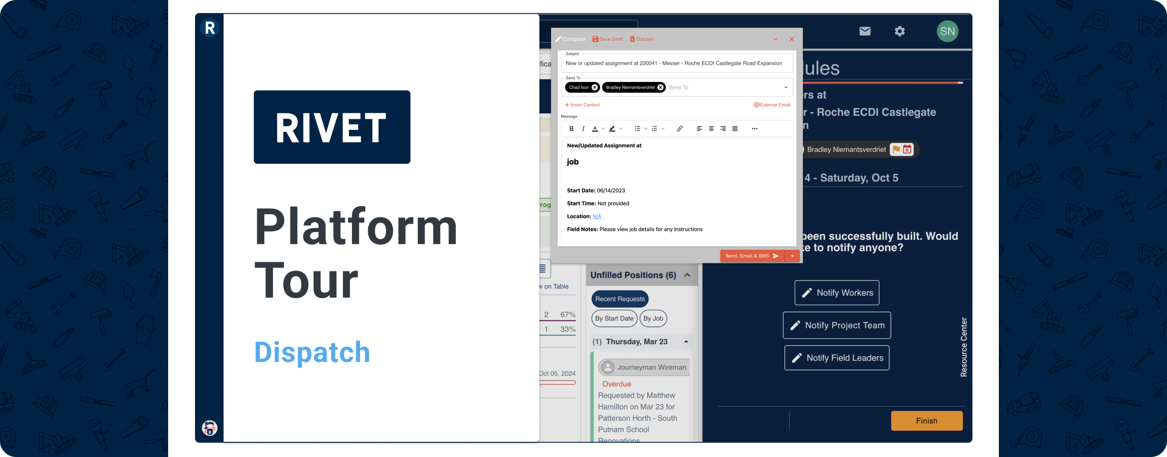 If you're still manually sending out project and schedule updates, we want to make your life easier. Check out how RIVET's automated Dispatch feature can save you from sending a flurry of hand-written comms to your crew at the 11th hour