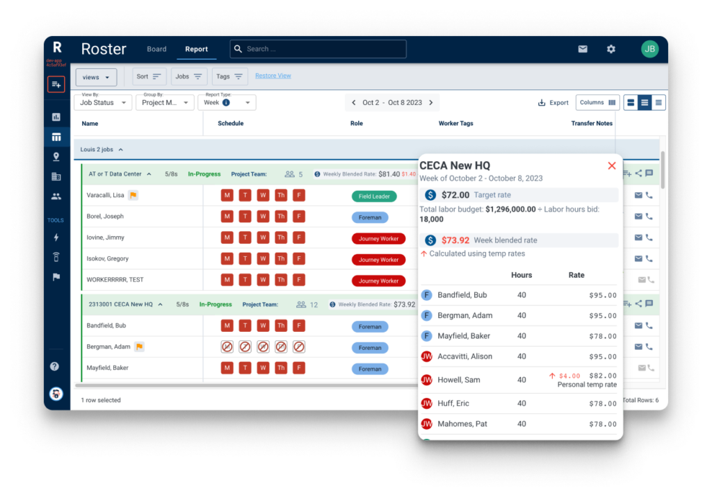 Today, it’s likely you manage your worker data in several spreadsheets. RIVET syncs worker data from your spreadsheets, ERP, accounting or payroll systems into robust profiles where operations teams can access and maintain qualifications, availability, history, labor rates and performance. Safety, HR and Scheduling teams come together under one roof for better workforce management.