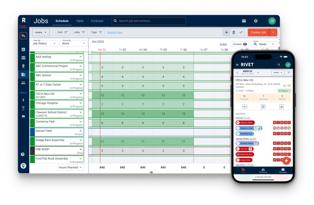 Effective scheduling requires an accurate, real-time Roster. Utilize RIVET to schedule the right worker, for the right job, and the right time.